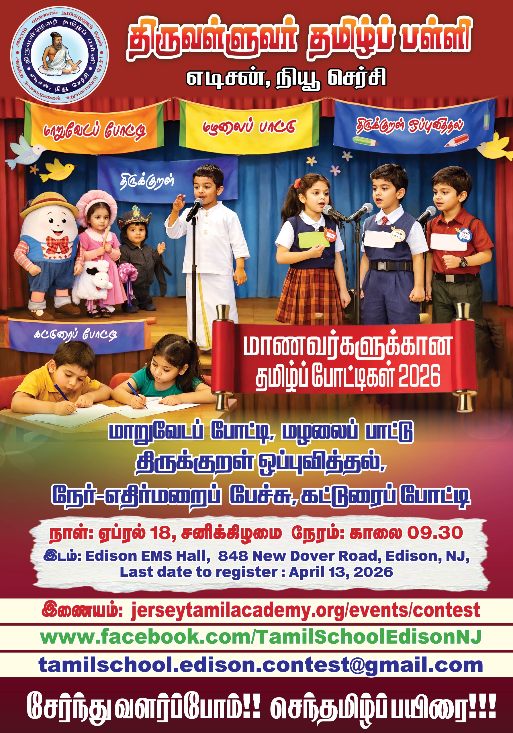 Thiruvalluvar Tamil School was founded to create an interesting educational platform for children and young adults living in the Garden State of New Jersey to love and learn about Tamil - an ancient South Asian Language that has a great history & rich literature and the longest surviving traditional Culture. The students will learn to Read, Write and Converse the language through fun activities and games. With the help of the language, they will understand better and follow the culture by participating in dance, drama, music and any art form.